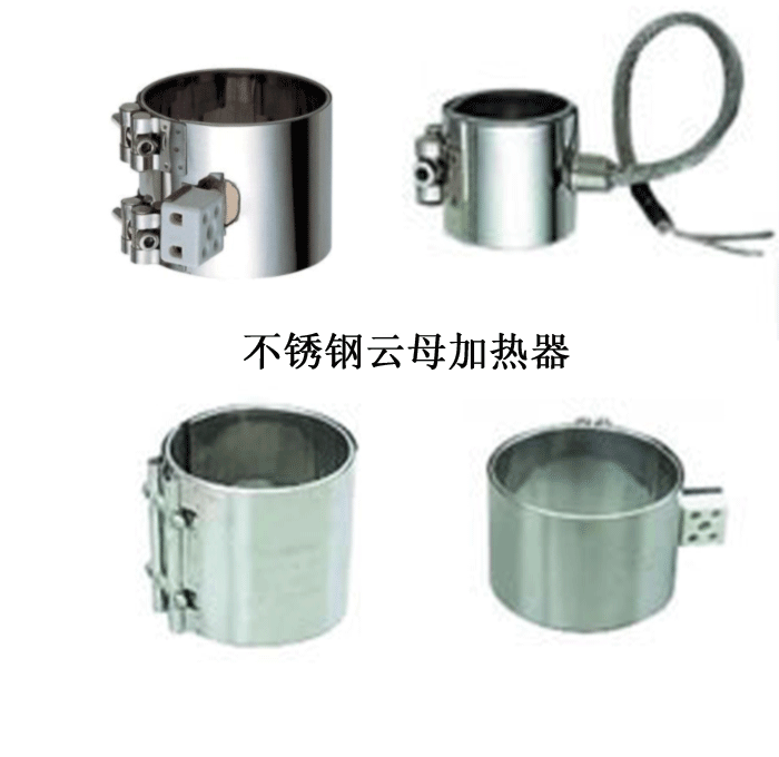 不銹鋼云母電加熱器以0.3~0.5mm不銹鋼板為外殼,中間以高絕緣性耐高溫的云母板為芯,均勻繞以各種標準規格的鎳鉻合金電阻絲作為發熱體,經成型機加工成各式所需形狀。可根據用戶需求的接線方式,電壓從110V、180V、220V、380V , 高功率負載每平方3.5W 。將外散熱面增加保溫裝置,內散熱面燒結紅外線這樣可節約用電百分之35。不銹鋼云母加熱器有圈型和板狀等規格